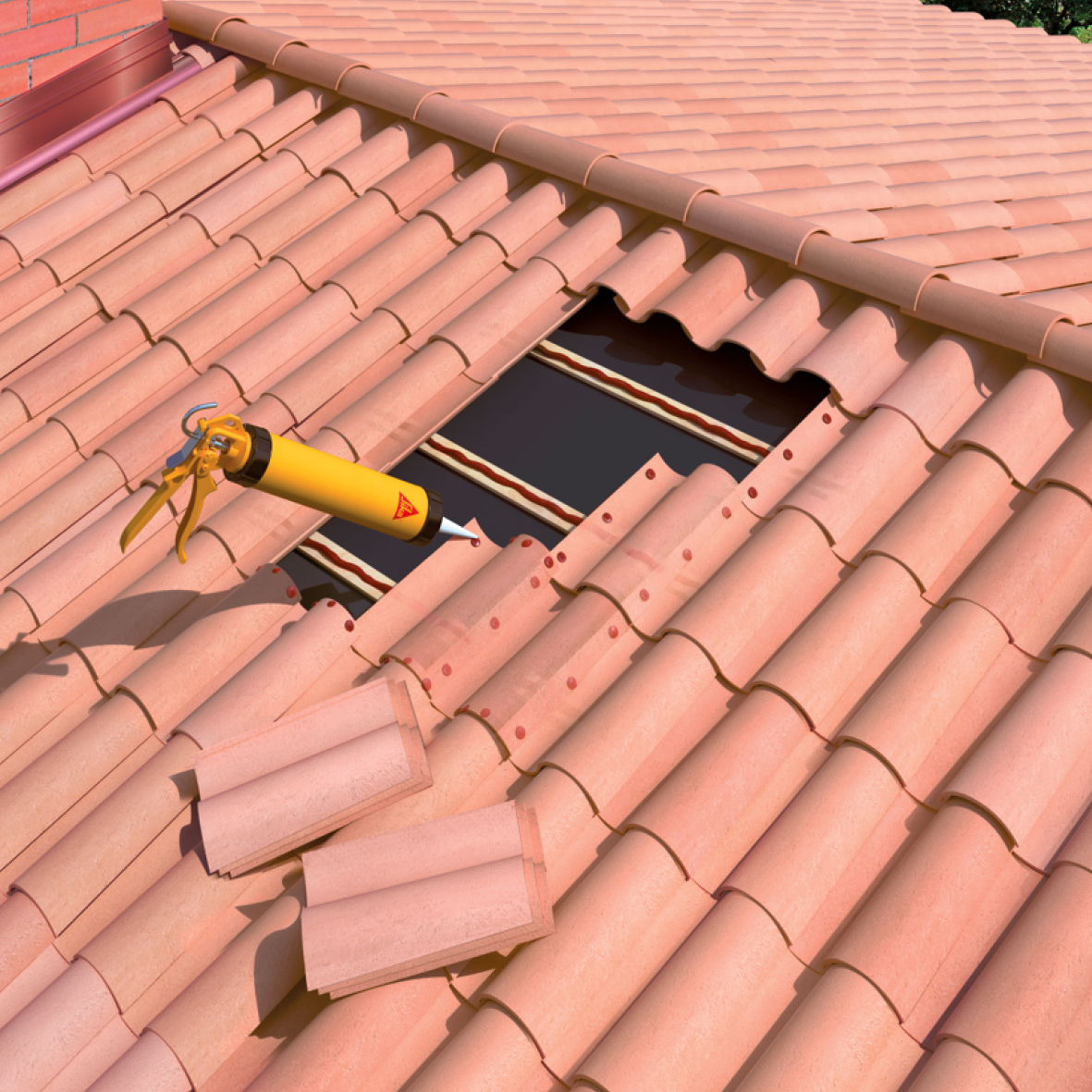 Kit Sikaflex-155 Fixotuile Purform rouge tuile - Kit de 24 recharges (400 ml) +1 pistolet - Terre cuite